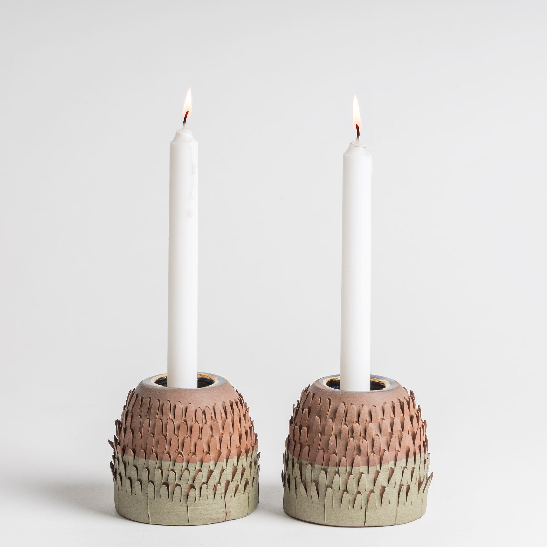 Bring elegance and meaning to your Shabbat table with this handcrafted clay candle holder, featuring a rich green base with refined gold accents. Carefully made by hand, each piece is uniquely shaped and painted, celebrating the beauty of traditional craftsmanship.
