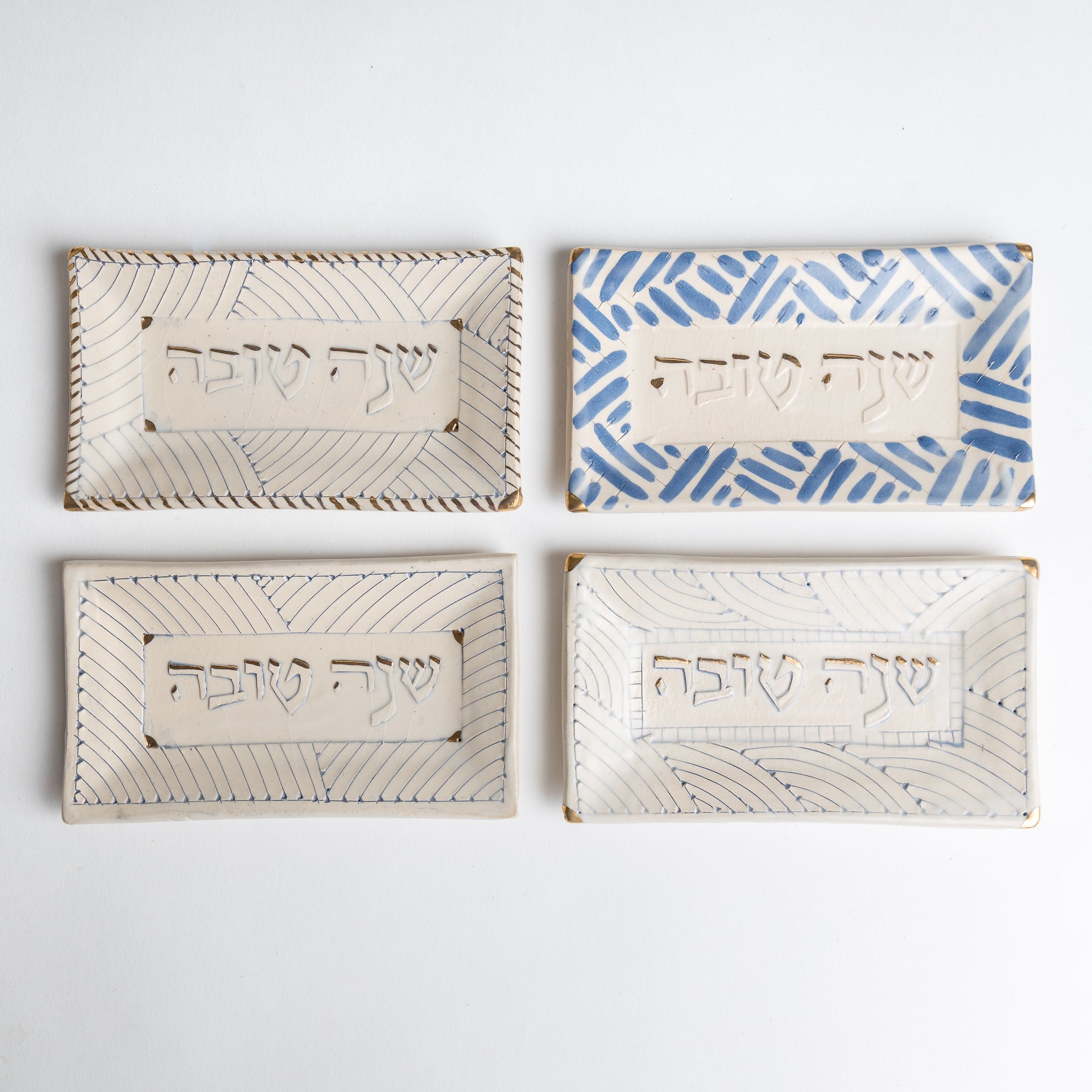 this precious Rosh hashanah dish makes a unique gift for the host who has everything, and be sure keep one for yourself as well! a special way to make sure to start the new year with love. these dishes are each unique, each hand painted with gold accents, and can be matched together in all different ways. an elegant way to brighten up any holiday table