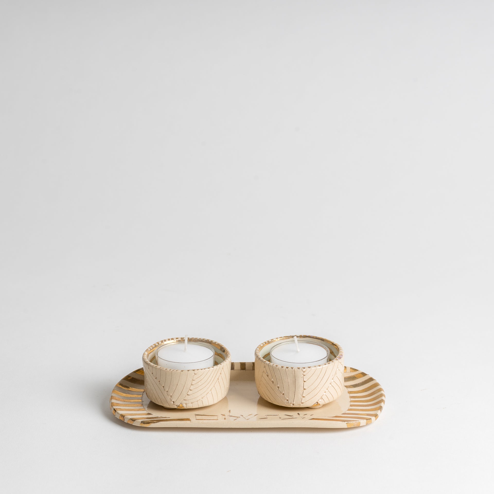 this elegant set of shabbat candles holders comes in various colors, and pink is one of our favorites! perfect size for any tea light candles, this colorful set will add brightness and beauty to the blessing bringing in the shabbat. the matching dish is a suitable size for your candle lighting spot, also great size for travel. meaningful birthday gift; wedding gift, bar/bat mitzvah gift